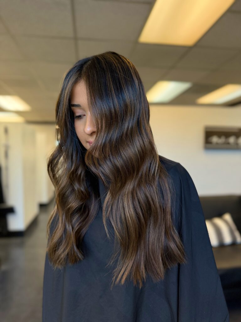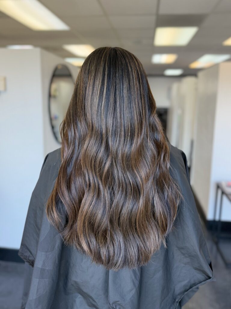 For example, brunettes can have lived-in caramel or mocha tones, while blondes might have brighter pieces with a soft root blend. No matter the shade, the goal is always dimension, softness, and lower-maintenance grow out!
